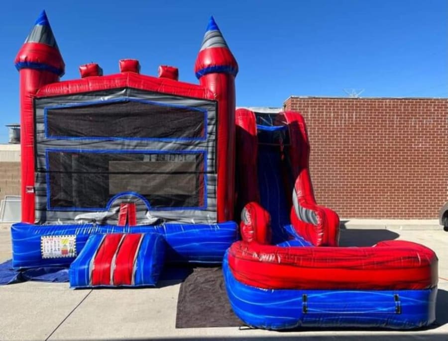 Introducing the Marble Combo 5 in 1 Inflatable - the ultimate addition to any party or event! This inflatable combo features a spacious bouncing area, a climbing wall, a slide, basketball hoop, and even a pool. The vibrant marble design is sure to catch the eye of all your guests and create a fun and exciting atmosphere. Made with high-quality materials, this inflatable is durable and safe for all ages to enjoy. It is easy to set up and take down, making it the perfect choice for any occasion. Don't settle for a boring party - upgrade to the Marble Combo 5 in 1 Inflatable and make your event unforgettable!