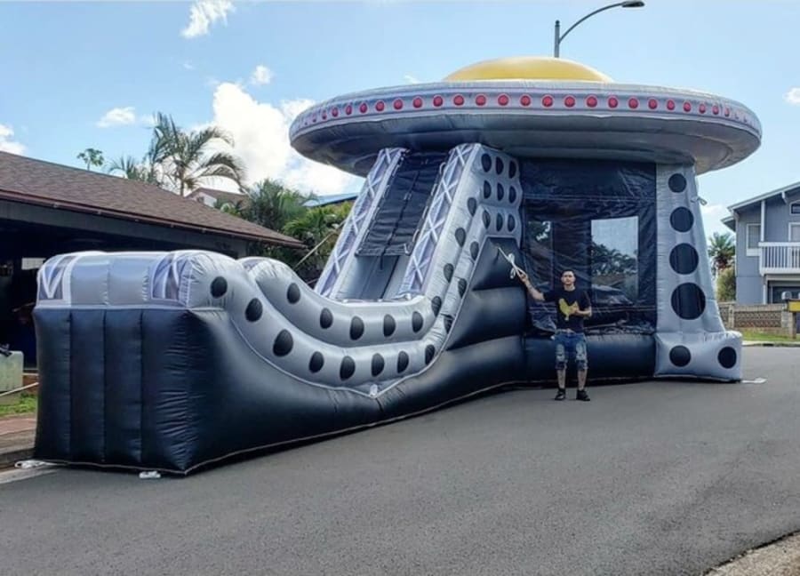 This bouncer combo is out of this world! This HUGE UFO is 37' by 25' and 20' Tall. The UFO Combo is great for children of all ages. This 4 in 1 inflatable jump-house is a centerpiece for your next party.