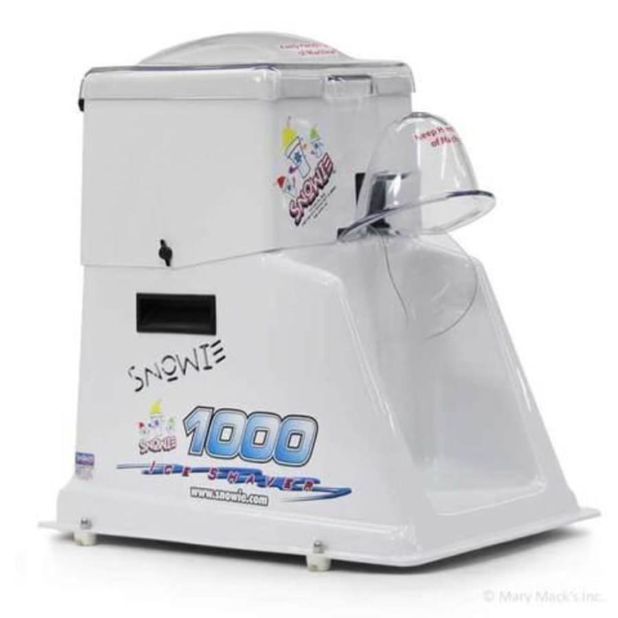 Includes: (1) shave ice machine, (3) Gallon syrup Rainbow flavors "Blue Vanilla, Banana & Fruit Punch" and (200) cups