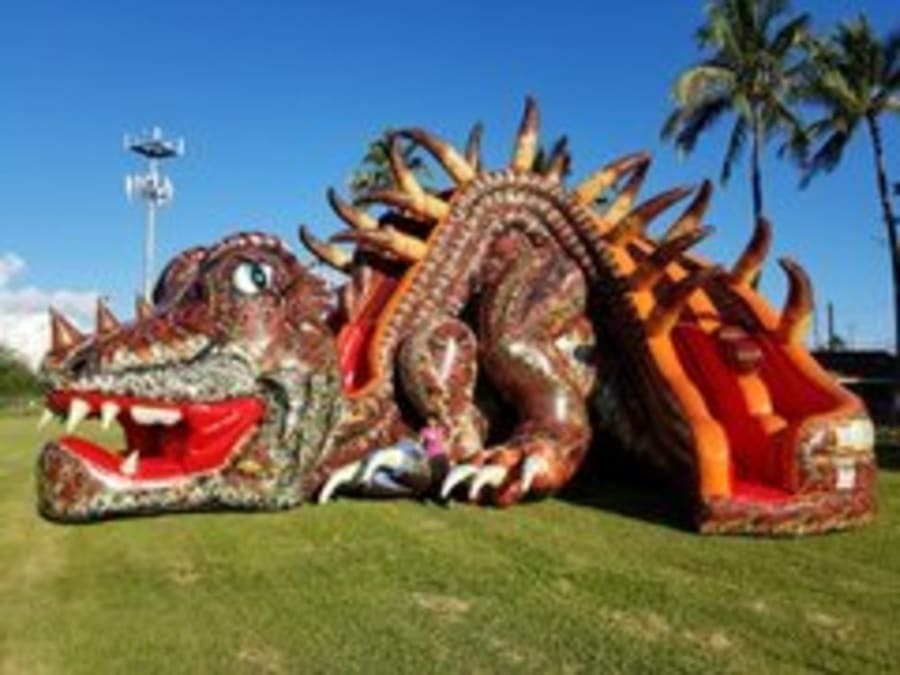 The Slideasaurus⢠180 slide is made of lite n strong⢠and fire-resistant vinyl making it portable, safe and durable. This bigger than life inflatable slide is guaranteed to be a crowd stopper of any corporate event or carniva!.
