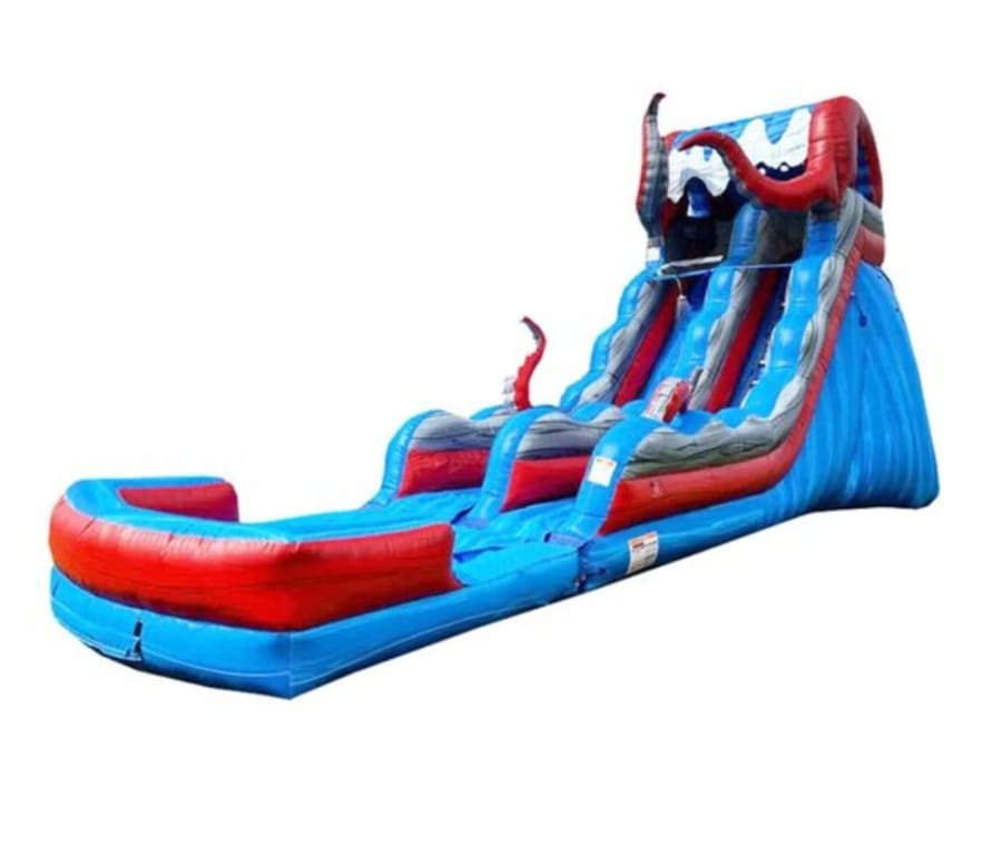 Introducing the ultimate summer thrill ride - the 21ft Ocean Battle Waterslide! This massive inflatable waterslide is perfect for any outdoor event or party, providing hours of fun and excitement for kids and adults alike. With its towering height the Ocean Battle Waterslide will have everyone screaming with delight as they race down the slippery slope and splash into the refreshing pool below. Made from durable and high-quality materials, this waterslide is built to last and can withstand even the most enthusiastic riders. So why wait? Grab your swimsuit and get ready for an unforgettable adventure with the 21ft Ocean Battle Waterslid