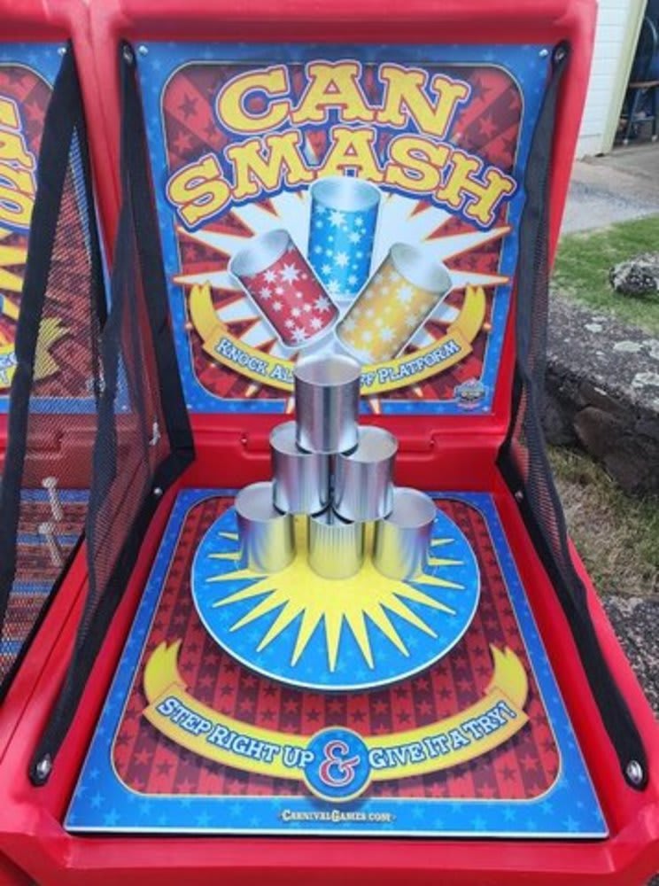 Knock 'em down and feel the thrill! 🎯 Our new Tabletop Can Smash game brings the excitement of the carnival right to your table. Take aim, throw the ball, and watch those cans tumble! Perfect for family fun and friendly competition. 💥