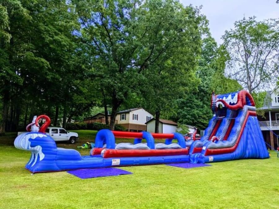 Introducing the ultimate summer water attraction - the 21ft Ocean Battle Waterslide with Slip N Slide! This amazing inflatable water slide is perfect for all ages and will provide hours of fun in the sun.