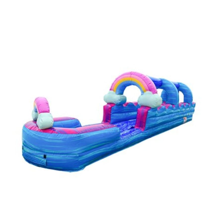 Slip n slide rentals with a pool are extremely popular in Honolulu, Hi. Oahu Jump has the largest selection of water slide rental and slip n slide rentals in the island. Our newest addition is our imperfect rainbow slip n slide. Â This slip n slides features bright vinyl with colors that pop! A fun rainbow theme and a large deep pool. Our imperfect rainbow slip n slide fits in with unicorn themes, rainbow events, and glitter sparkle parties.