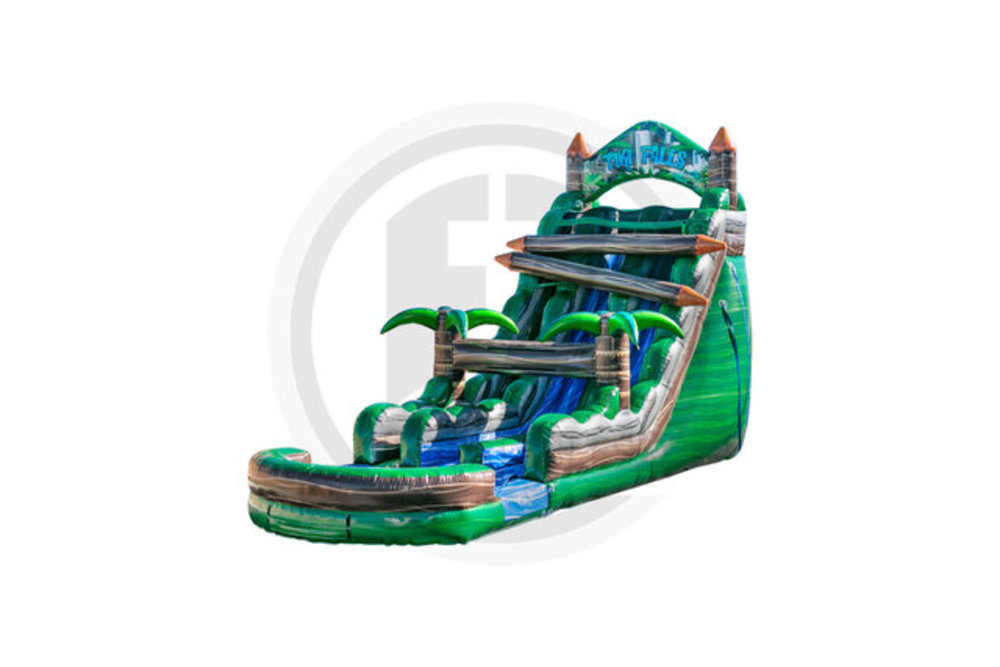 Looking for a huge water slide that's big enough to handle a crowd? Oahu Jump has this really awesome dual lane slide called Tiki Falls! With a total height of 23 feet, you will zoom down underneath the falling logs, and then you slip and slide to the pool at the end. This is one epic ride!