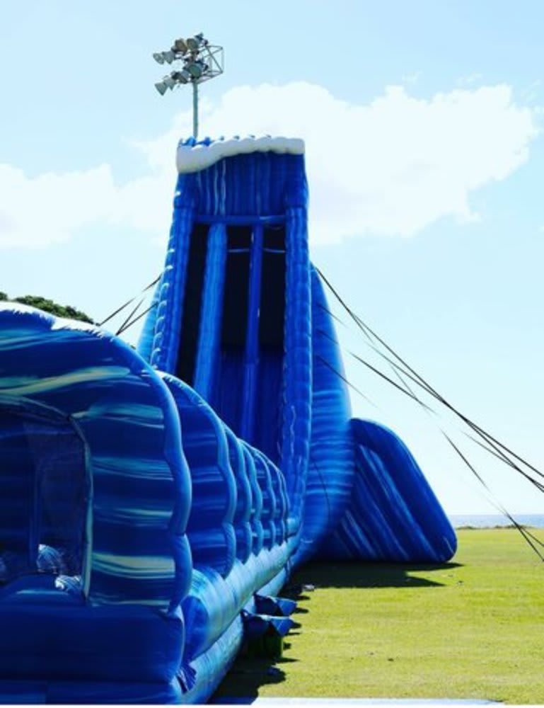 DIMENSIONS: (42H x 125L x 40W) The World's Largest and Tallest inflatable dual lane water slide. Please call our office for rental and detailsΓ